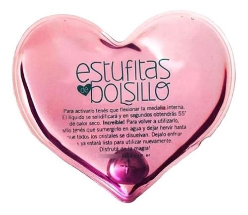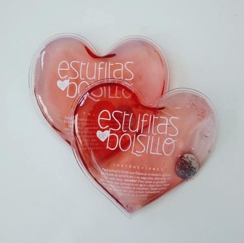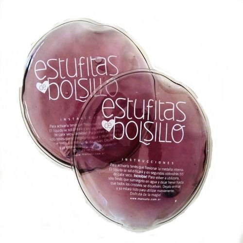 Es una almohadilla de silicona de 10 cm de diámetro (dependiendo de la forma, la medida varía aproximadamente en ese rango) rellena de gel/líquido y una chapita cóncava metálica flotando en su interior. Al presionar la chapita, esta se invierte y al hacerlo activa un efecto que empieza a solidificar el gel. Enseguida comienza a levantar temperatura, llegando a 55°, un calor ameno y agradable. Mientras se va calentando, la estufita es maleable, pero al cabo de 10 o 15 minutos, más o menos, se enfría y acaba por solidificarse completamente, quedando rígida. Cuando queda así y el efecto ya pasó, se puede poner a hervir en una fuente con un colchón de agua. Se deja tan solo unos minutos (puede rondar entre 3 y 5 minutos, quizá un poco más o un poco menos) y en cuanto se note nuevamente líquido, debe sacarse del agua. Se deja enfriar y luego ya se puede reutilizar. Y así sucesivamente.